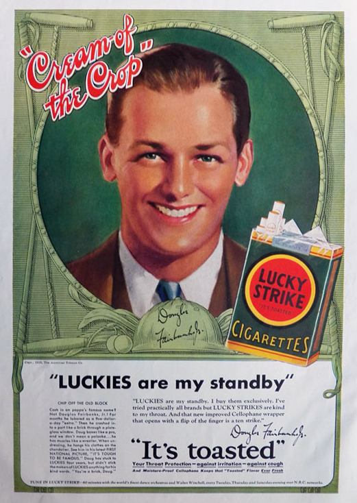 While celebrity product endorsement has become more prevalent with the rise in social media, this is not a new area. Back in the 1930s when the health risks weren’t common knowledge, tobacco companies in particular turned to celebrity endorsement to advertise/promote their products, as you can see in the below picture: